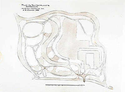 Getekende plattegrond van landgoed Dordwijk.