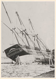Driemastklipper Kosmopoliet I, scheef/liggend voor de …
