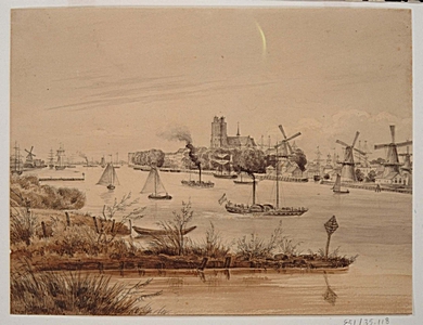 Dordrecht vanuit het zuidwesten, omstreeks 1855?