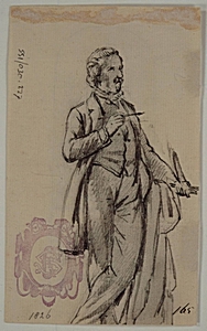Portret van een onbekende kunstenaar met penseel in de …