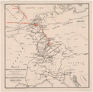 Kaart van Midden-Europa met aanduiding van de bootdienst …