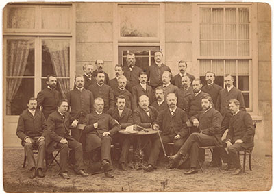 Groepsportret in de tuin van A. Mak aan de Ferdinand …
