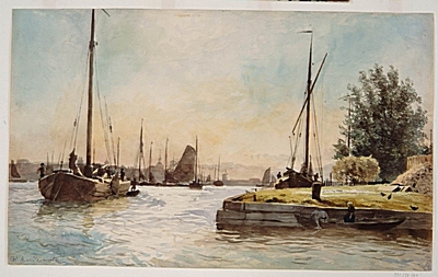Dordrecht vanuit de Papendrechtse haven, anno 1875