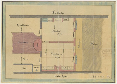 Een plattegrond van het huis op de hoek Voorstraat / …
