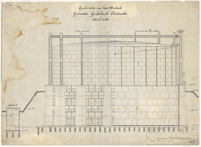 De bouwtekening van de gashouder aan de Markettenweg.