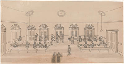 Interieur van een van de zalen (eetzaal, mannenafdeling) …