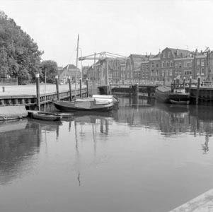 Haven in Oud-Beijerland gezien vanaf de Havenkade. Links …