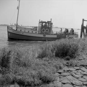 Veerdienst III bij de aanlegplaats aan de Rivierdijk in …