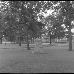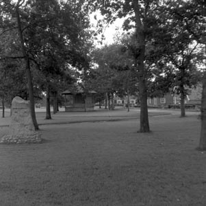 Gedenksteen en muziektempel vanaf de rotonde …
