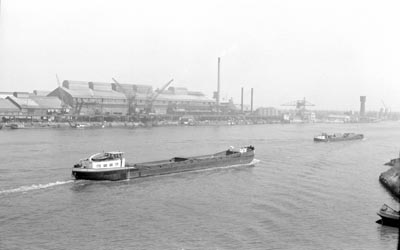 De kabelfabriek in Alblasserdam, gezien vanaf de Brug …