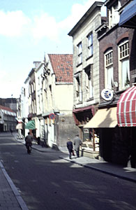 De Lange Breestraat in richting van de Visstraat. Op de …