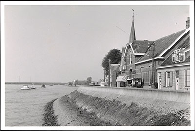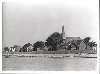 Oost Kinderdijk in Alblasserdam met de Gereformeerde Kerk.