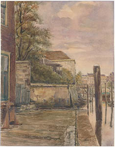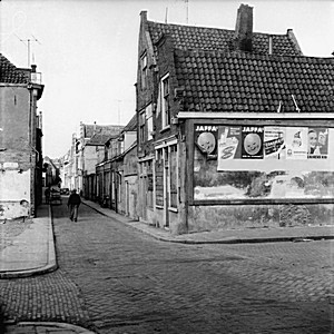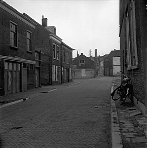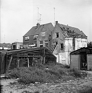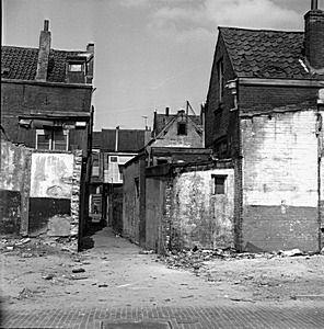 Achterkant huizen en een brandpoort aan de Kolfstraat