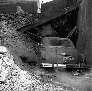 Auto gered uit de puinhopen van een ingestort gebouw uit …