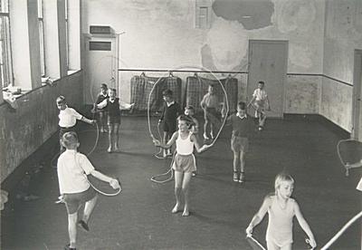 De Statenzaal in het Hof, tijdelijk ingericht als gymzaal …