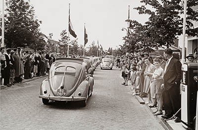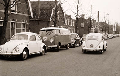 Rij Volkswagen Kevers op de Brouwersdijk, waarschijnlijk …
