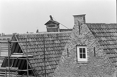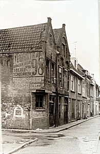 De achterkant van panden aan de Gravenstraat op de hoek …