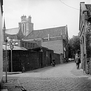 Houttuinen met op de achtergrond de Grote Kerk