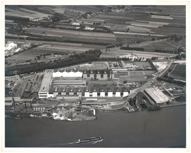 Luchtfoto van de kabelfabriek langs de Noord in …