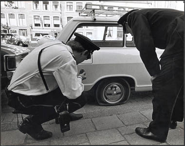 Auto met lekke band in de Johan de Wittstraat.