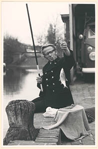 Brandweerman Piet Hoekstra vist in de Spuihaven vanaf het …
