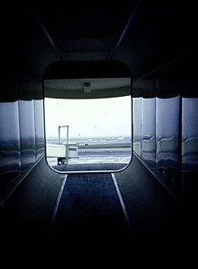 Passagiersbrug op een Amerikaans vliegveld, gemaakt door …