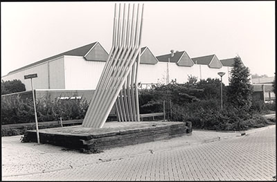 Kunstwerk Wed-Strijd van Roel Teeuwen bij de sporthal en …