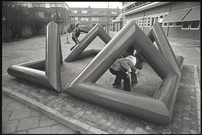 Kunstwerken in de vijver aan de Nassauweg, gezien …