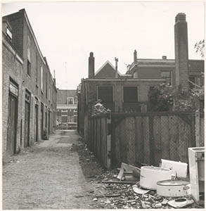 Verwaarloosd binnenplaatsje bij de Nicolaasdwarsstraat; …