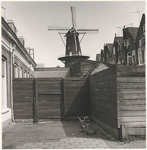 De Fortuinhof met op de achtergrond molen Kijck over den …