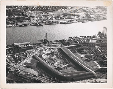 De bouwput voor de aanleg van de Drechttunnel.
