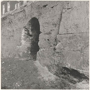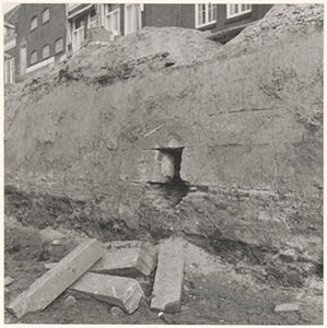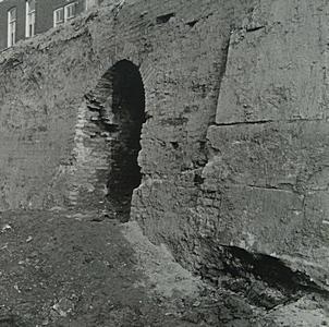 De opgegraven stadsmuur langs de Spuihaven tussen het …
