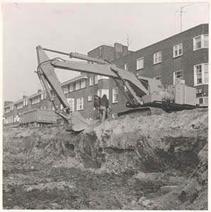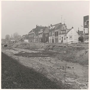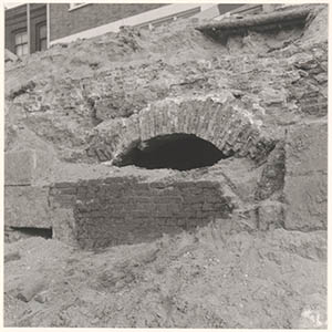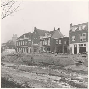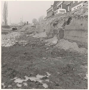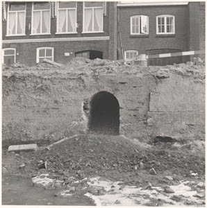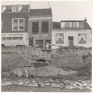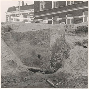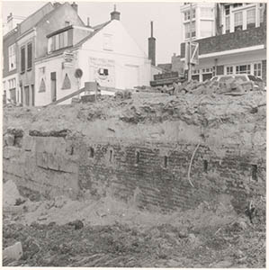 Resten van de stadsmuur in de drooggelegde Spuihaven …