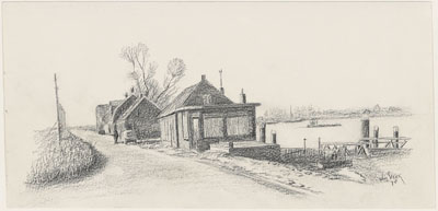 De Wieldrechtse Zeedijk en het 's-Gravendeelse veer.