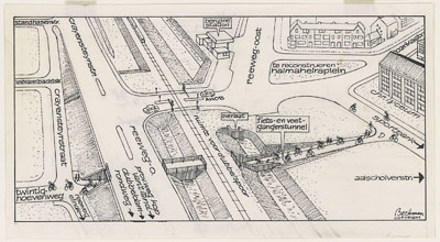 De fiets- en voetgangerstunnel onder het spoor bij het …
