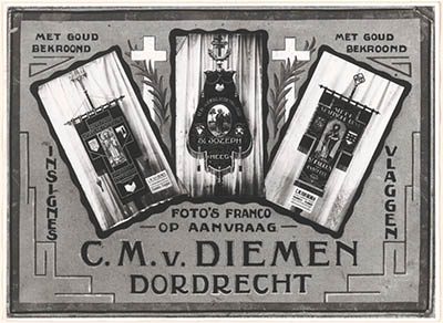 Reclamekaart van de firma Van Diemen in vlaggen en vaandels.