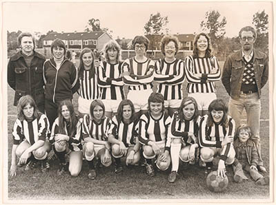 Leden van de damesvoetbal-vereniging Dubbeldam poseren op …