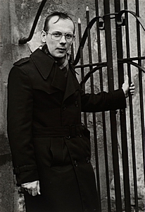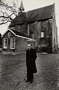 Ds. Veldhuizen voor de kerk in de Dorpsstraat te Wijngaarden
