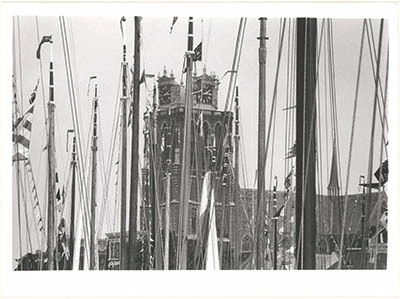 De Grote Kerk tussen de masten van zeilschepen in de …