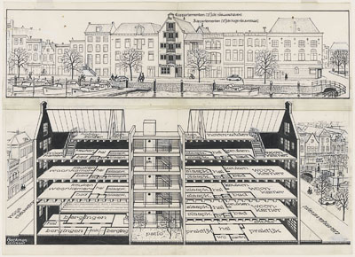 Aanzicht en opengewerkte tekening van het te verbouwen …