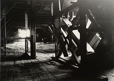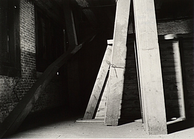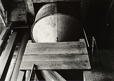 Houten kokers met transportbanen op de tweede verdieping …