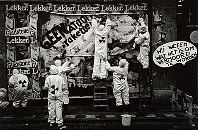 Betogers tegen kernwapens op de Groenmarkt.