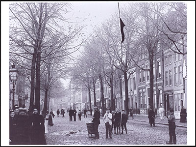 Stereofoto van Voorstraat vanaf de Prinsenstraat naar het …
