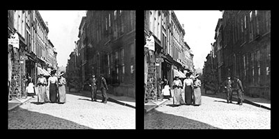 Stereofoto van de Mazelaarsstraat en Mazelaarsbrug …