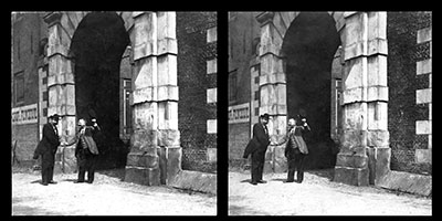 Stereofoto van de Catharijnepoort aan de zijde van de …