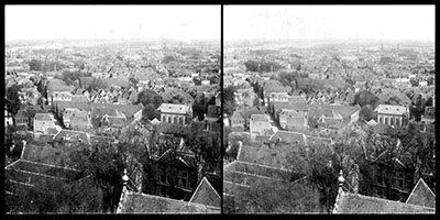 Stereofoto vanaf de Grotekerkstoren naar het noordoosten. …