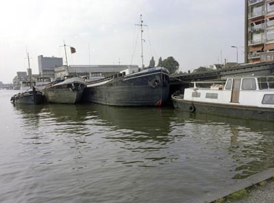 Afgemeerde schepen in de Oude Maas aan de Zwijndrechtse …