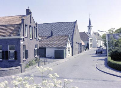 De Kerkstraat vanaf de Molendijk met de kerk van de …