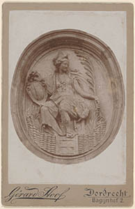 Medaillon van de Dordtse stedenmaagd aan de rivierzijde …