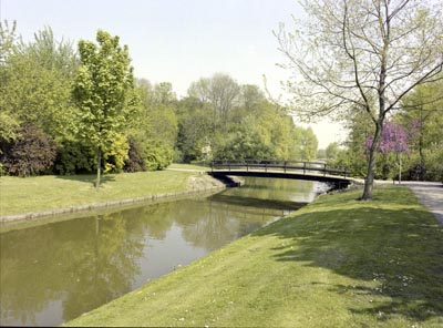 Voetbrug naar park Dubbelsteyn vanaf de Gravensingel.